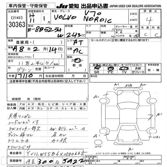 Volvo V70 с аукциона Японии JU Aichi лот № 30363