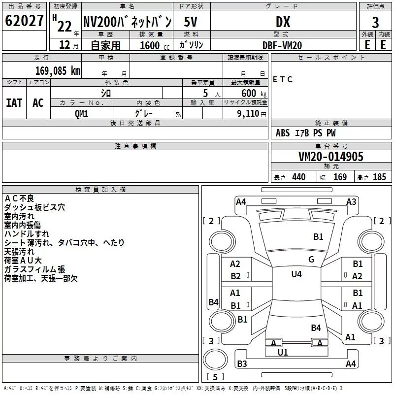 Nissan NV200 с аукциона Японии TAA Kanto лот № 62027