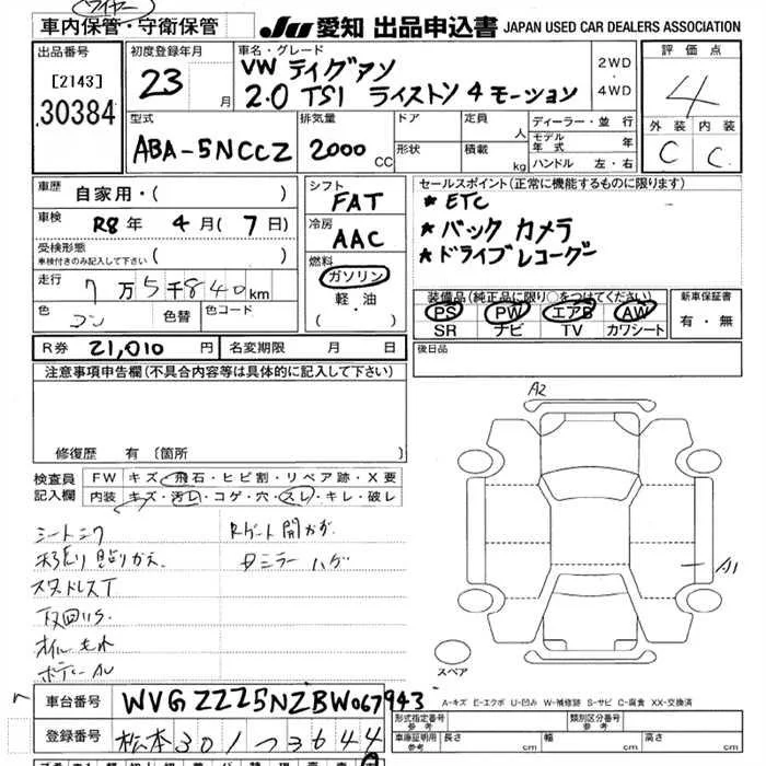 Volkswagen TIGUAN с аукциона Японии JU Aichi лот № 30384