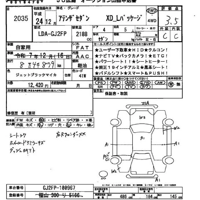 Mazda ATENZA SEDAN с аукциона Японии JU Hiroshima лот № 2035
