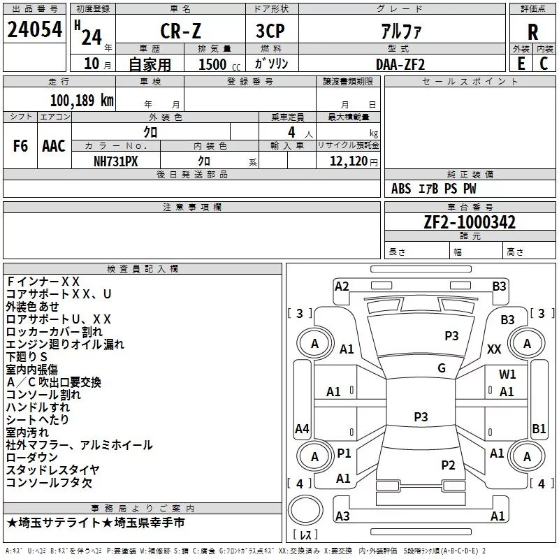 Honda CR-Z с аукциона Японии TAA Kanto лот № 24054