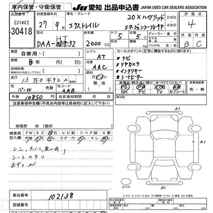 Nissan X-TRAIL с аукциона Японии JU Aichi лот № 30418