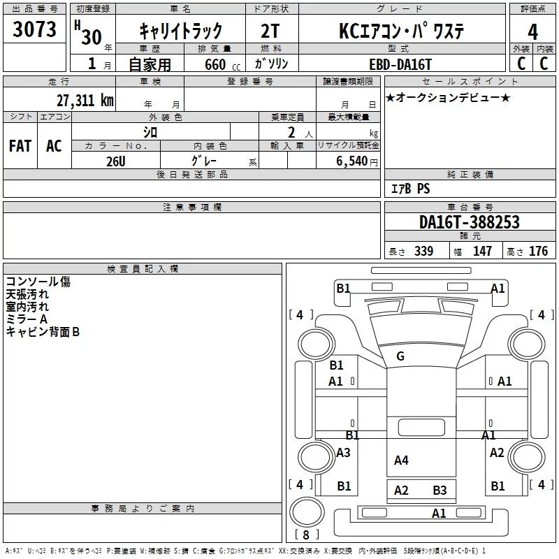 Suzuki CARRY TRUCK с аукциона Японии TAA Chubu лот № 3073