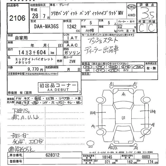 Suzuki SOLIO с аукциона Японии JU Fukushima лот № 2106