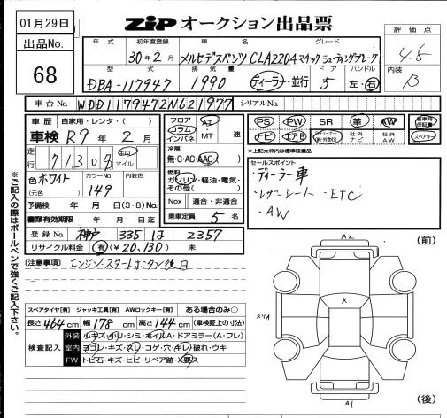 Mercedes-Benz CLA CLASS с аукциона Японии ZIP Osaka лот № 68