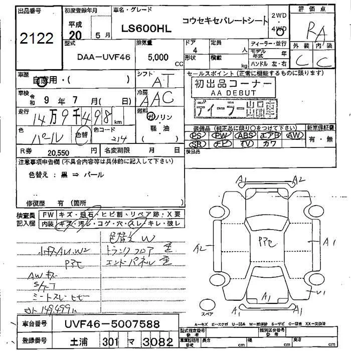 Lexus LS с аукциона Японии JU Fukushima лот № 2122