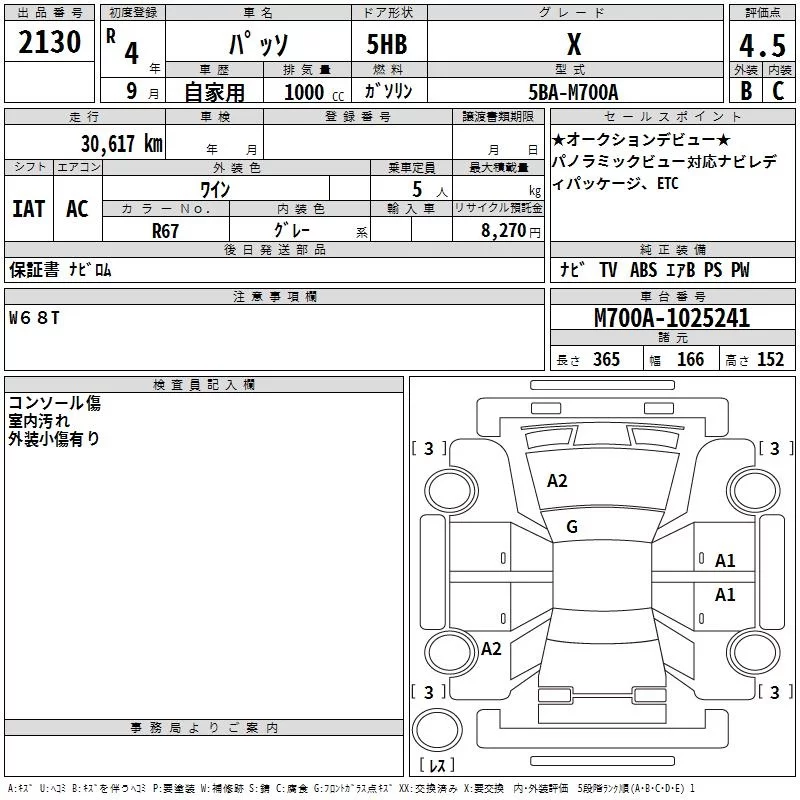 Toyota PASSO с аукциона Японии TAA Chubu лот № 2130