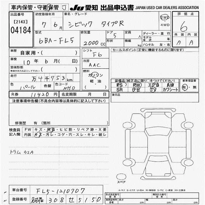 Honda CIVIC с аукциона Японии JU Aichi лот № 4184