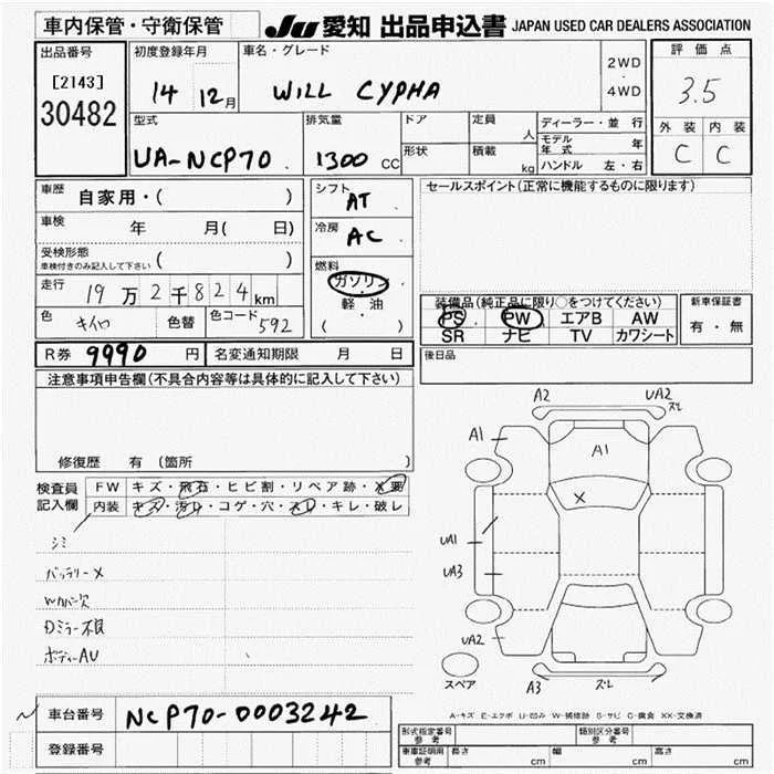 Toyota WILL с аукциона Японии JU Aichi лот № 30482