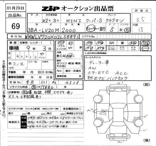BMW MINI с аукциона Японии ZIP Osaka лот № 69