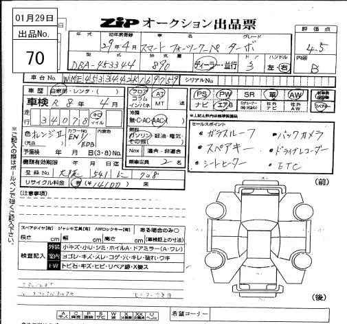 Smart FORTWO с аукциона Японии ZIP Osaka лот № 70