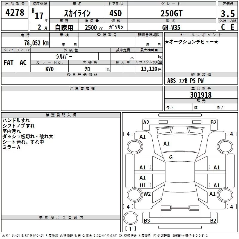 Nissan SKYLINE с аукциона Японии TAA Chubu лот № 4278
