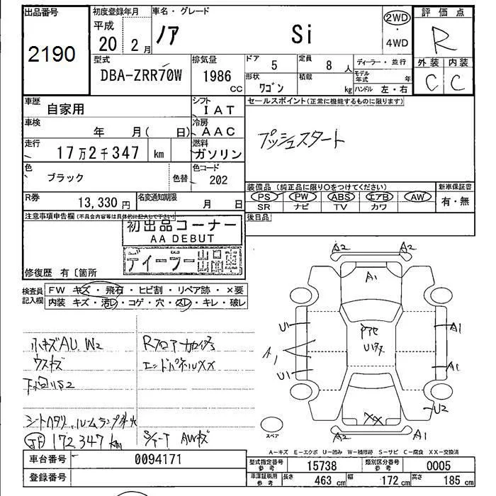 Toyota NOAH с аукциона Японии JU Fukushima лот № 2190