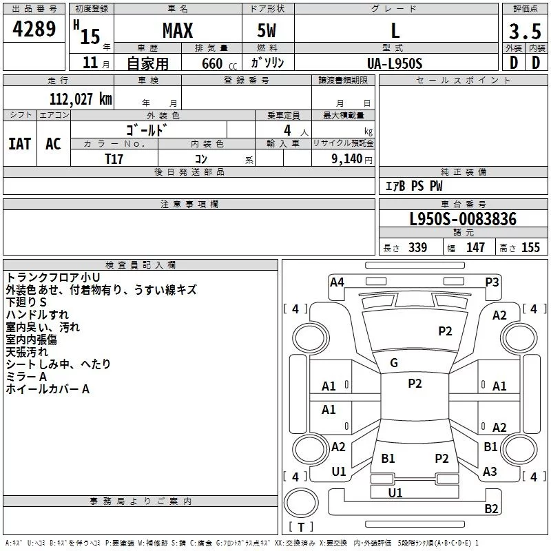 Daihatsu MAX с аукциона Японии TAA Chubu лот № 4289