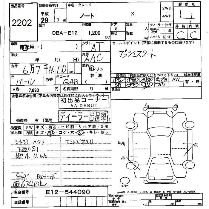 Nissan NOTE с аукциона Японии JU Fukushima лот № 2202