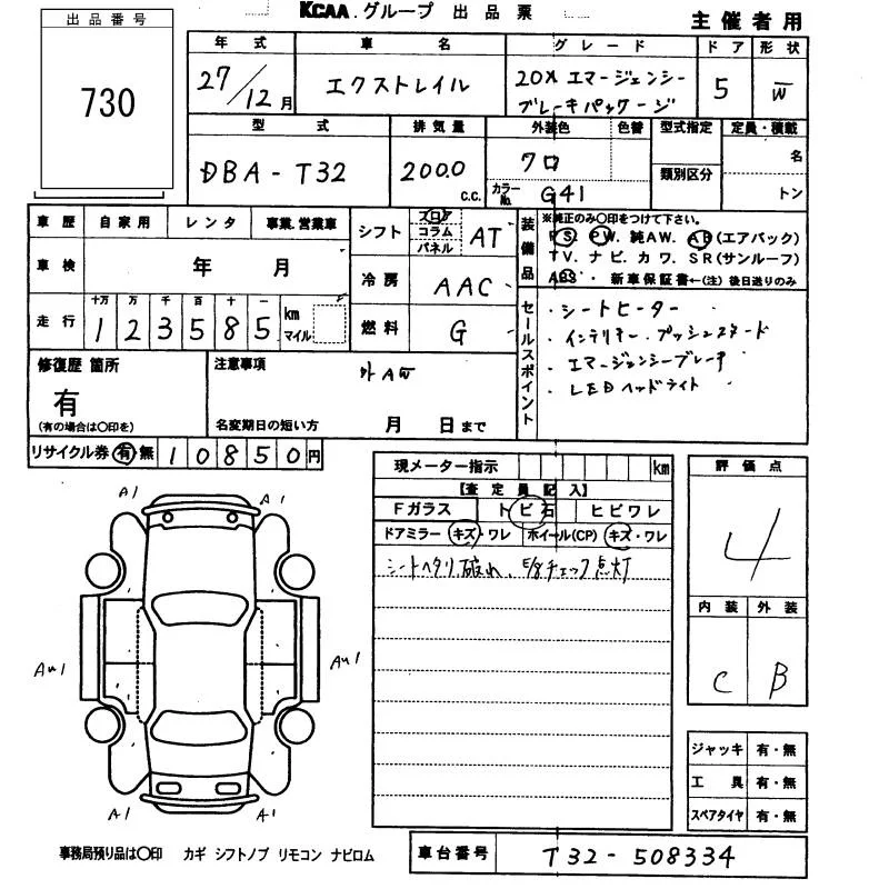 Nissan X-TRAIL с аукциона Японии KCAA Fukuoka лот № 730