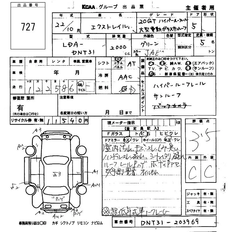 Nissan X-TRAIL с аукциона Японии KCAA Fukuoka лот № 727