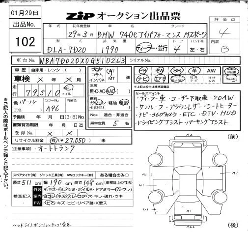 BMW 7-Series с аукциона Японии ZIP Osaka лот № 102