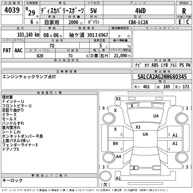 Rover DISCOVERY с аукциона Японии TAA Kanto лот № 4039