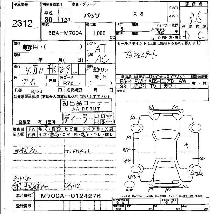 Toyota PASSO с аукциона Японии JU Fukushima лот № 2312