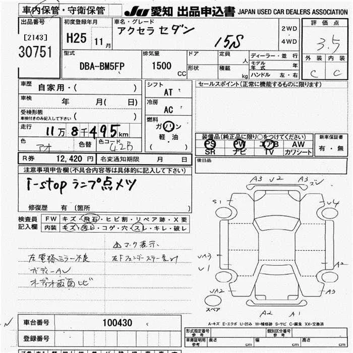 Mazda AXELA с аукциона Японии JU Aichi лот № 30751