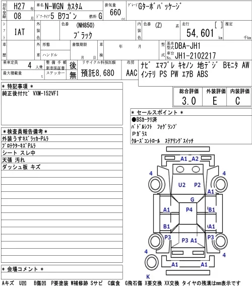 Honda N WGN с аукциона Японии NAA Osaka лот № 3088