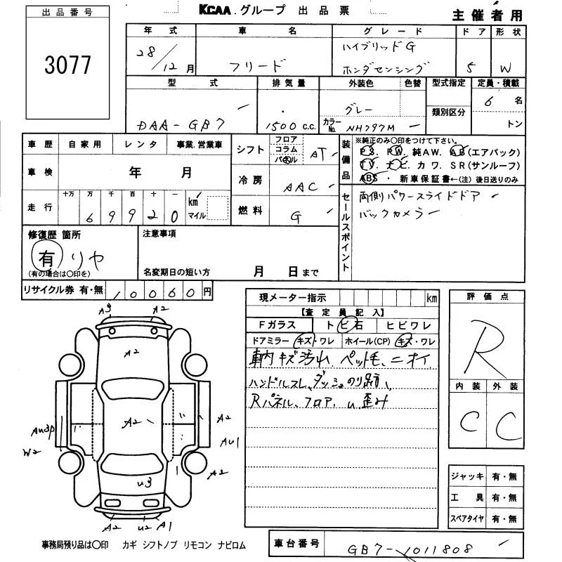 Honda FREED с аукциона Японии KCAA Fukuoka лот № 3077