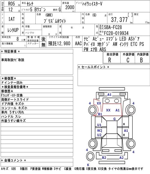 Nissan SERENA с аукциона Японии NAA Osaka лот № 36