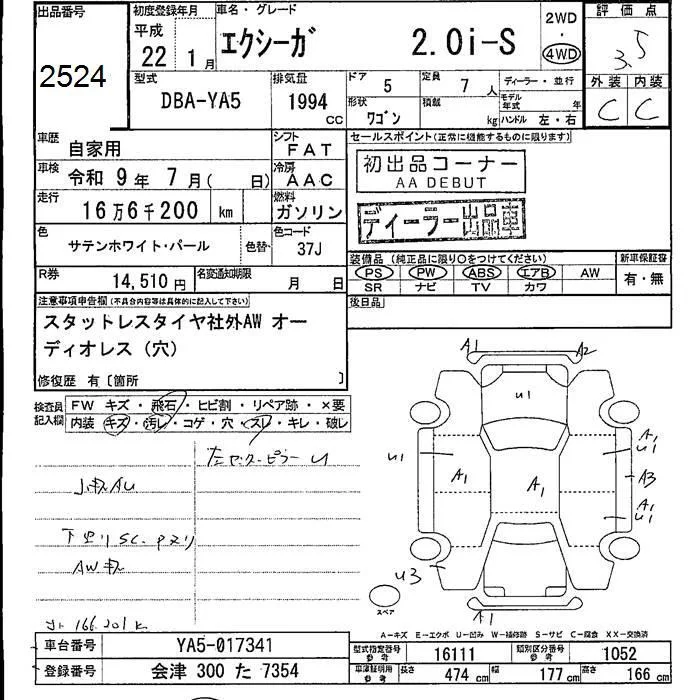 Subaru EXIGA с аукциона Японии JU Fukushima лот № 2524