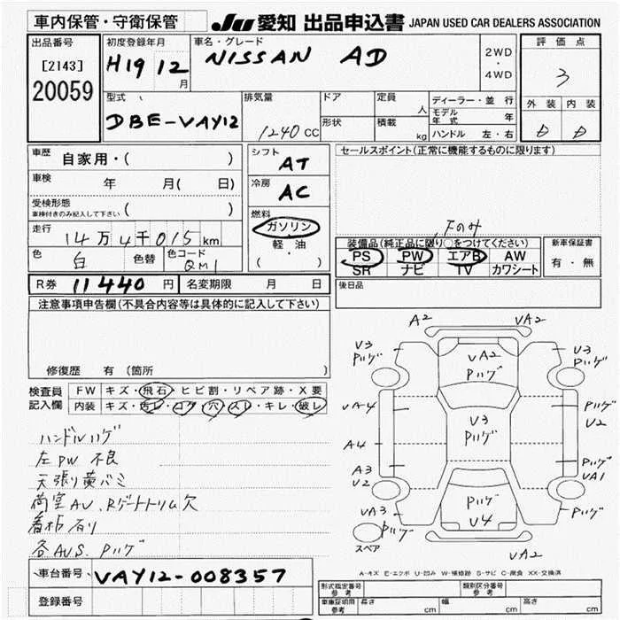 Nissan AD с аукциона Японии JU Aichi лот № 20059