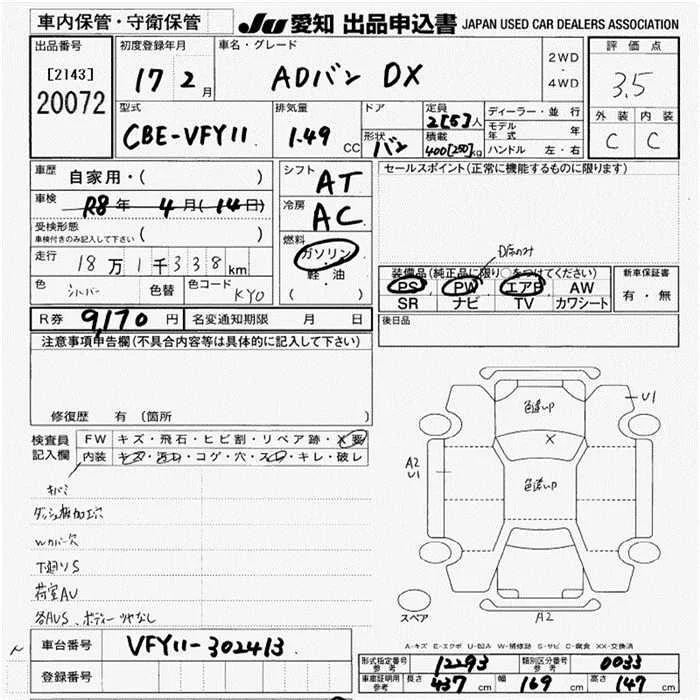 Nissan AD с аукциона Японии JU Aichi лот № 20072