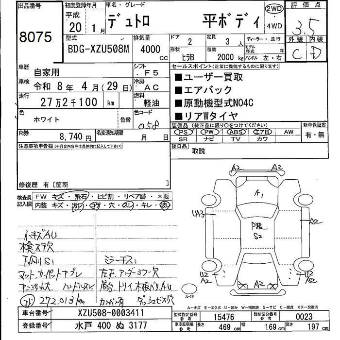 Hino DUTRO с аукциона Японии JU Fukushima лот № 8075