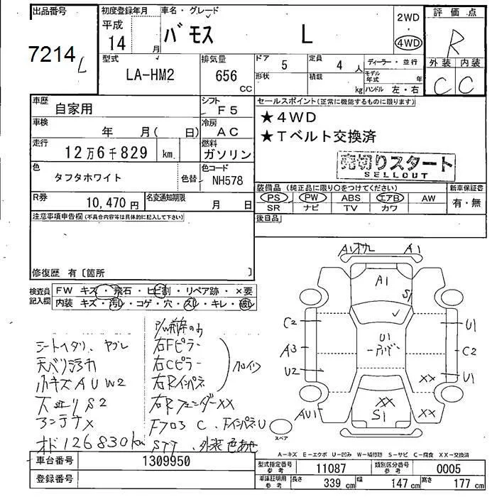 Honda VAMOS с аукциона Японии JU Fukushima лот № 7214