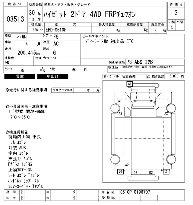 Daihatsu HIJET TRUCK с аукциона Японии ARAI Bayside лот № 3513