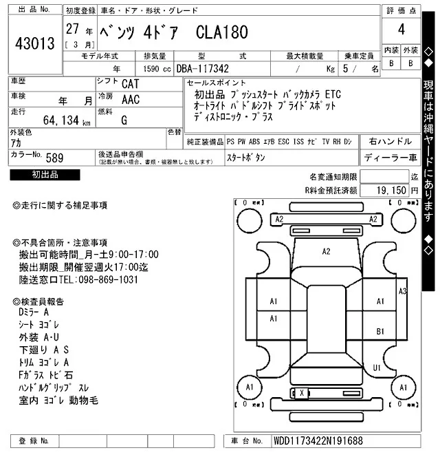 Mercedes-Benz CLA CLASS с аукциона Японии ARAI Bayside лот № 43013