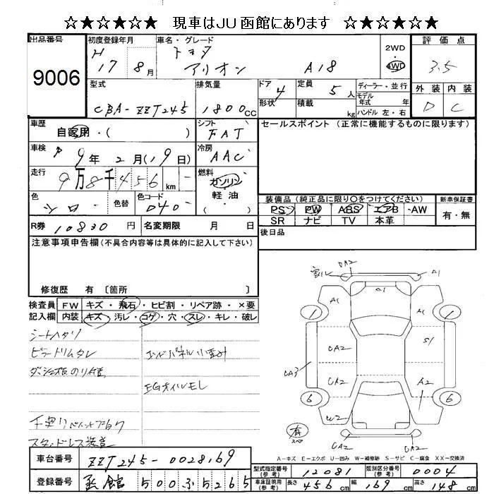 Toyota ALLION с аукциона Японии JU Hokkaido лот № 9006