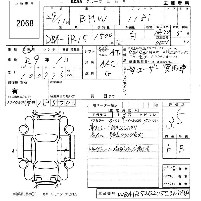 BMW 1-Series с аукциона Японии KCAA Yamaguchi лот № 2068