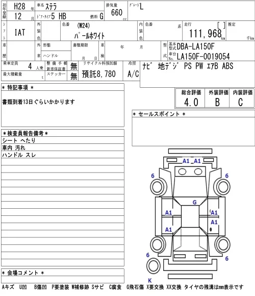 Subaru STELLA с аукциона Японии NAA Tokyo лот № 3315