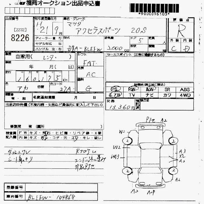 Mazda AXELA с аукциона Японии JU Fukuoka лот № 8226