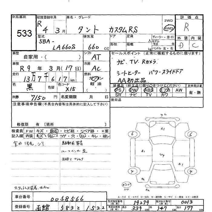 Daihatsu TANTO с аукциона Японии JU Hokkaido лот № 533