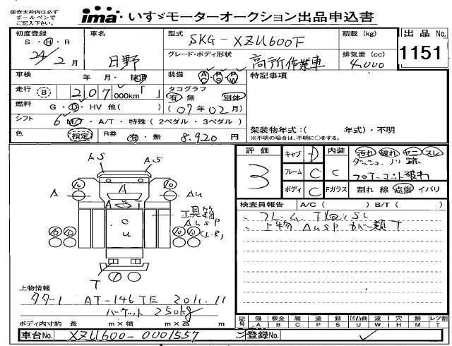 Hino DUTRO с аукциона Японии Isuzu Kobe лот № 1151