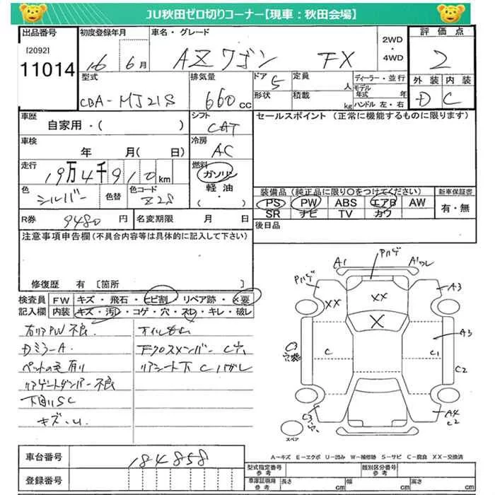 Mazda AZ WAGON с аукциона Японии JU Miyagi лот № 11014