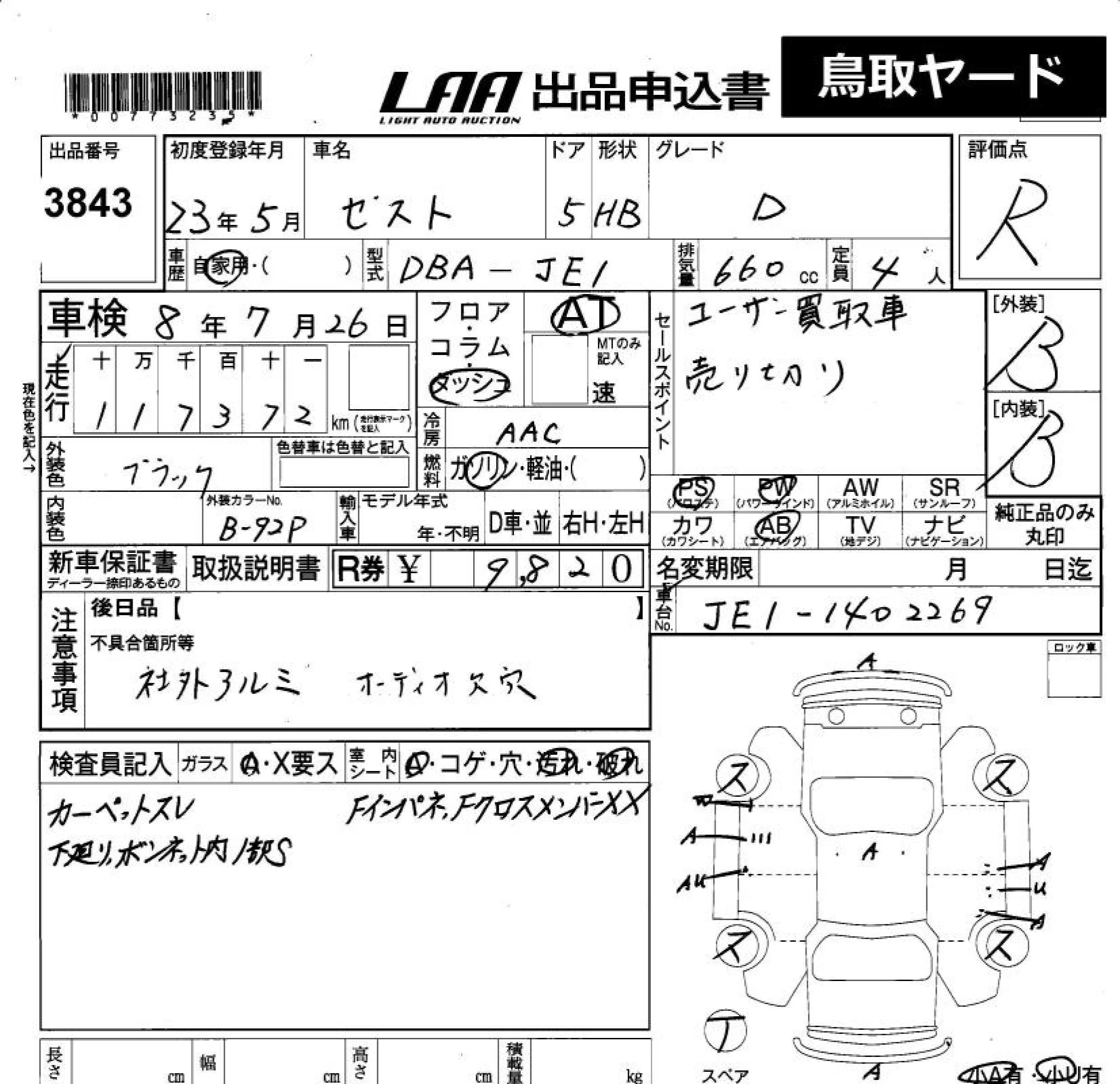 Honda ZEST с аукциона Японии LAA Okayama лот № 3843
