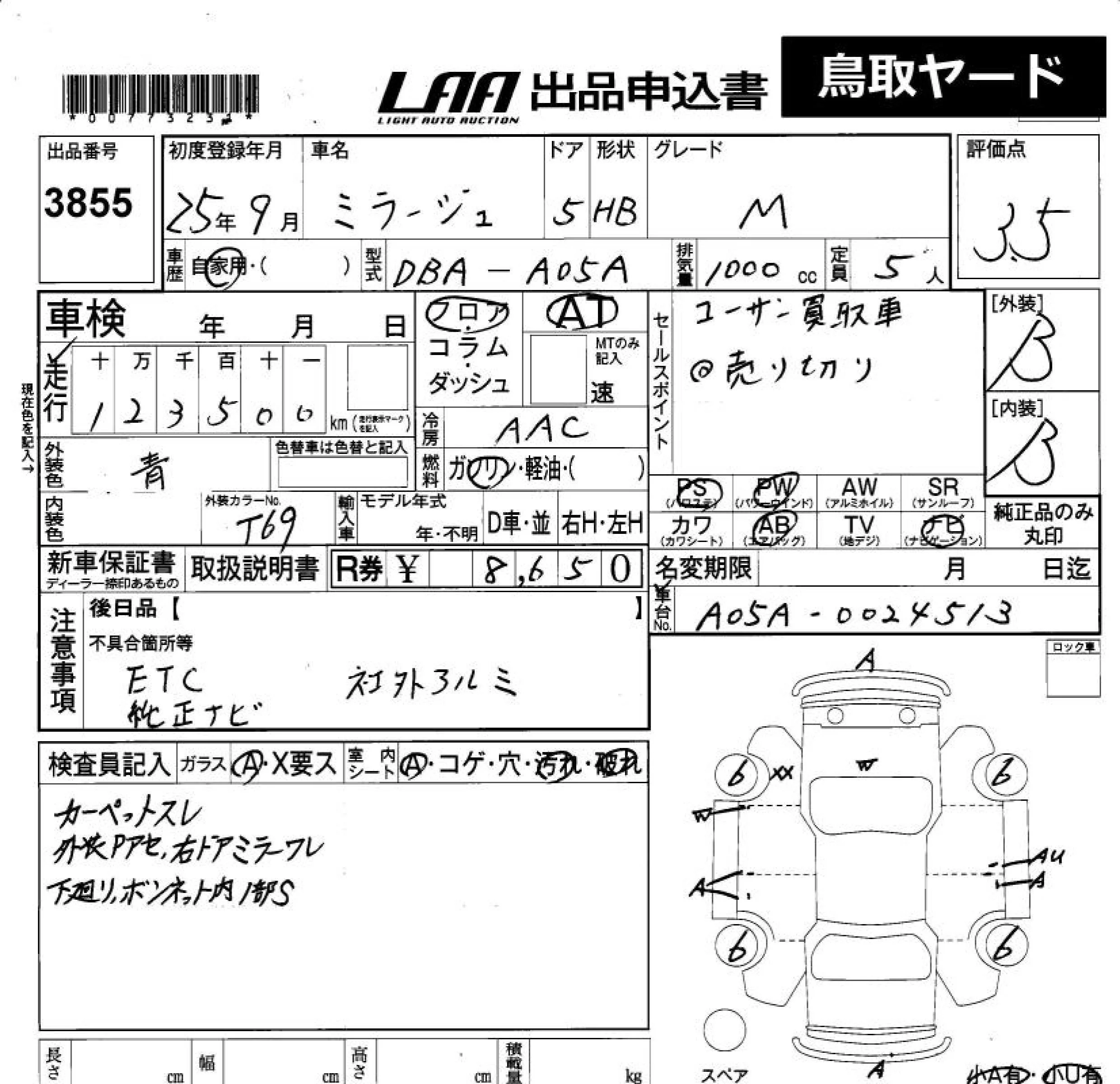 Mitsubishi MIRAGE с аукциона Японии LAA Okayama лот № 3855