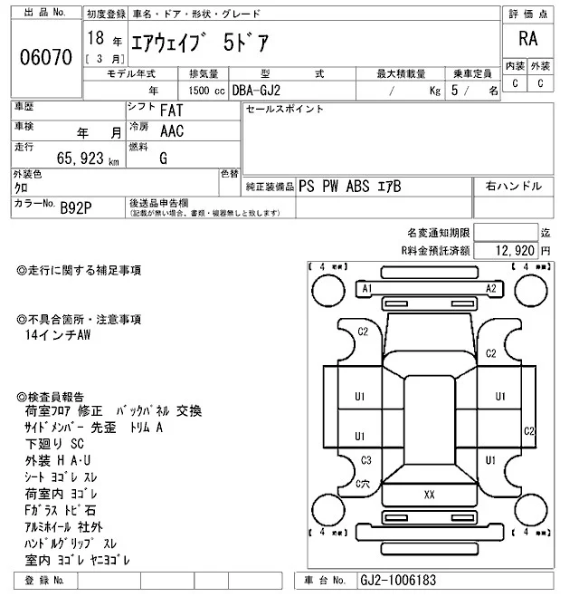 Honda AIRWAVE с аукциона Японии ARAI Sendai лот № 6070