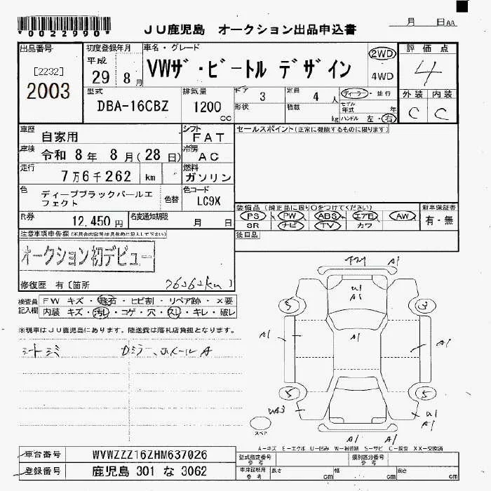 Volkswagen THE BEETLE с аукциона Японии JU Fukuoka лот № 2003