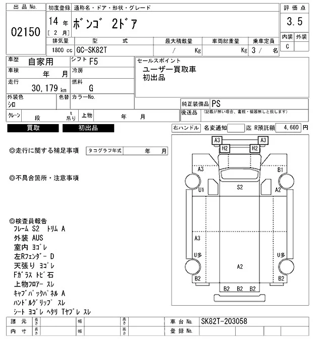 Mazda BONGO с аукциона Японии ARAI Bayside лот № 2150
