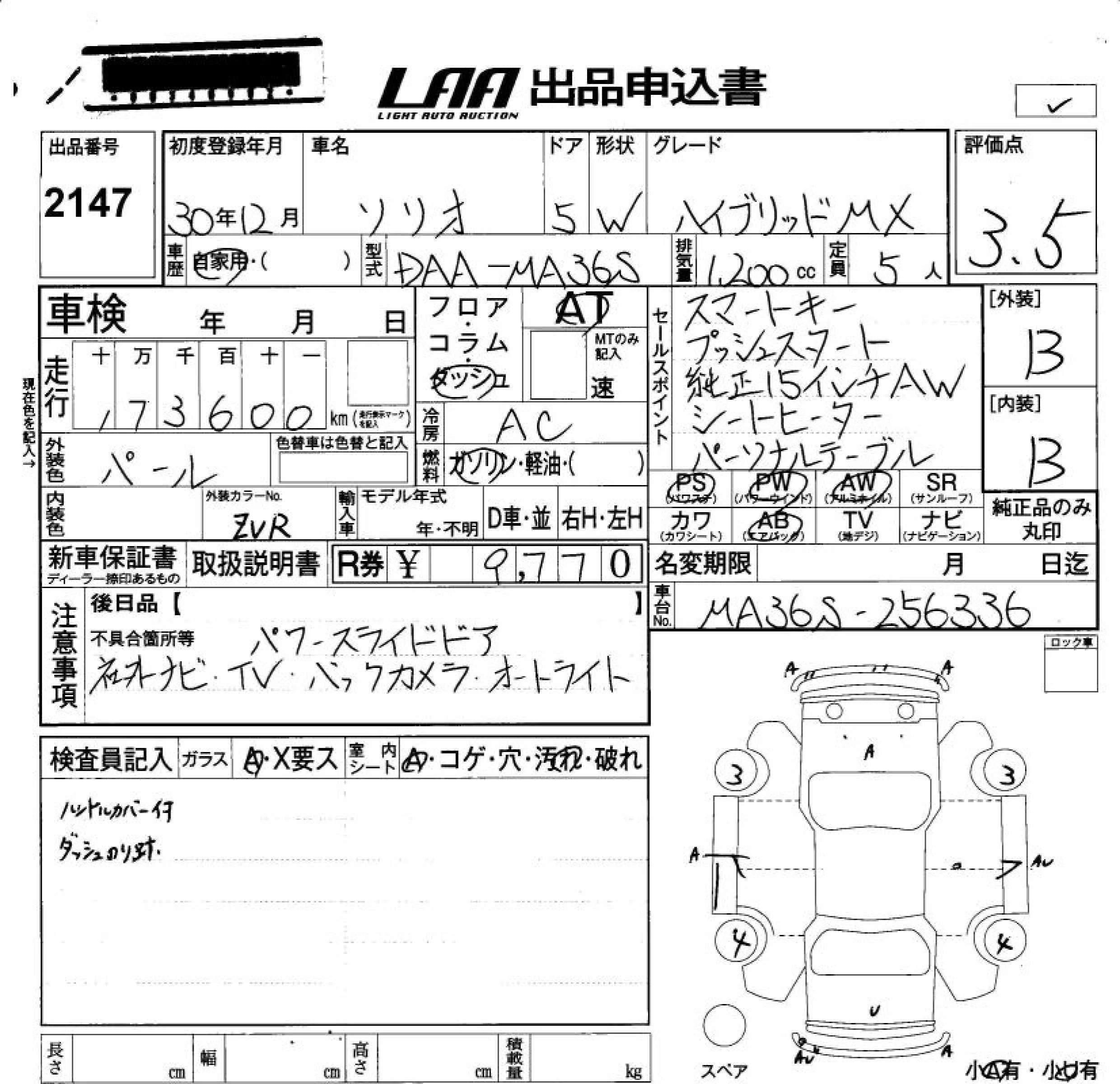 Suzuki SOLIO с аукциона Японии LAA Okayama лот № 2147