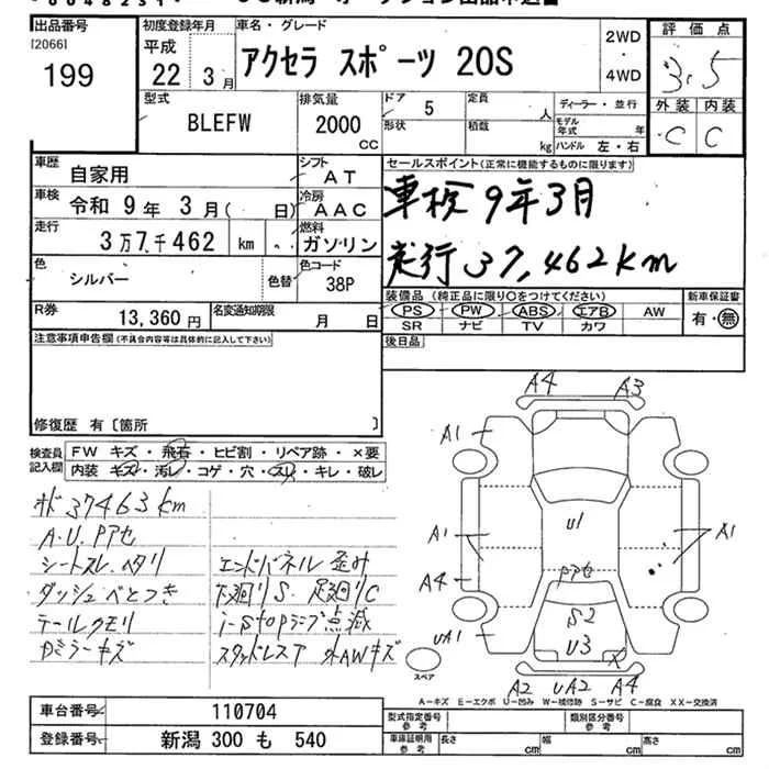 Mazda AXELA с аукциона Японии JU Niigata лот № 199