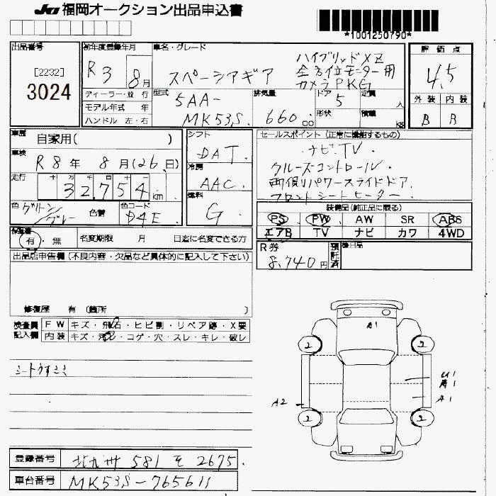 Suzuki SPACIA GEAR с аукциона Японии JU Fukuoka лот № 3024
